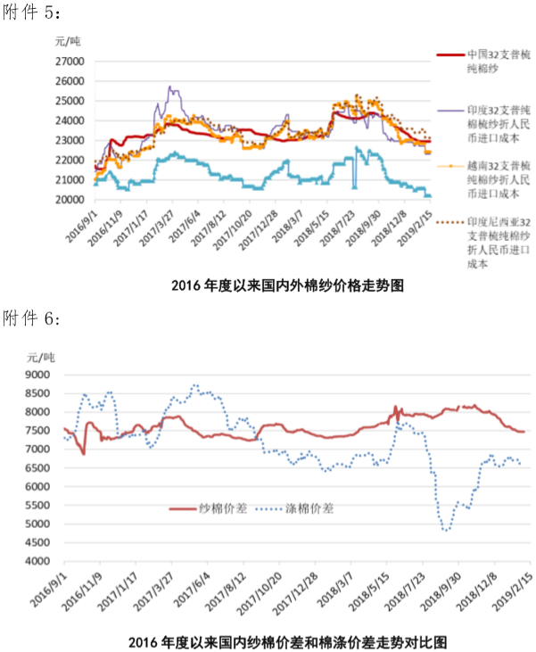 附件5:2016年度以來國內(nèi)外棉紗價(jià)格走勢圖