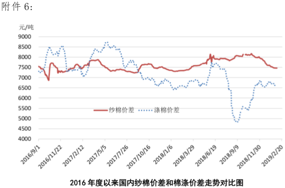 附件6:2016年度以來國內(nèi)紗棉價差和滌棉價差走勢對比圖
