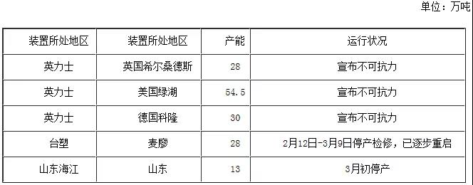 近期丙烯腈檢修裝置統(tǒng)計(jì)表