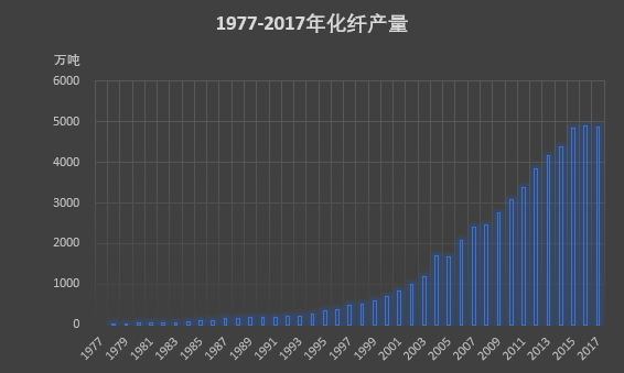 2、40年來,化纖產(chǎn)量增長近174倍。隨著我國棉紡生產(chǎn)能力快速增長,纖維加工量大幅增加,棉花自供量嚴重不足,盡管增加棉花進口,仍不能滿足棉紡纖維加工量需要,促使化纖行業(yè)飛速發(fā)展。據(jù)測算,2018年我國纖維加工量達5300萬噸,比2000年增長2.9倍。國內(nèi)棉花產(chǎn)量大多在400-600萬噸,盡管加大棉花進口,仍遠遠不能滿足棉紡企業(yè)需求,這在某種程度上加快化纖生產(chǎn)能力發(fā)展。2017年化纖產(chǎn)量達4877萬噸,40年增長近174倍,年均增長14.6%。