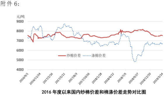 附件6:2016年度以來國內紗棉價差和滌棉價差走勢對比圖