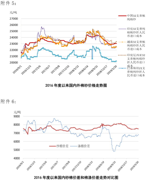 附件5:2016年度以來國內(nèi)外棉紗價(jià)格走勢圖