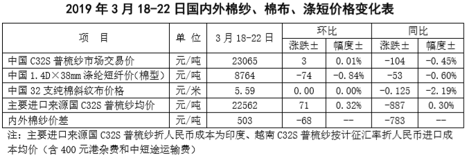 附件2:2019年3月18-22日國內(nèi)外棉紗價(jià)格變化表