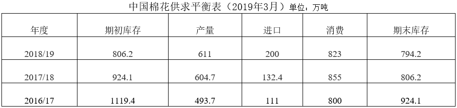 春節(jié)假期結(jié)束后,紡織企業(yè)陸續(xù)開(kāi)工,紡織品產(chǎn)銷(xiāo)略有下降,紗線(xiàn)和布庫(kù)存減少,企業(yè)原料庫(kù)存下降,新棉采購(gòu)逐漸活躍。中國(guó)棉花協(xié)會(huì)預(yù)測(cè):2018/2019年消費(fèi)量823萬(wàn)噸,與前期預(yù)測(cè)持平。