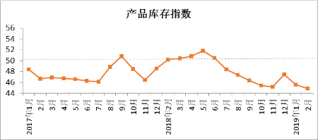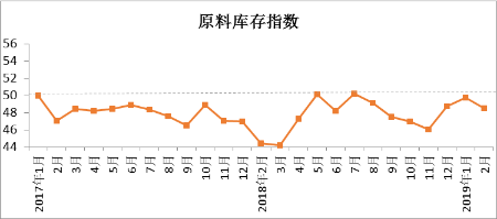 2月原料庫存指數(shù)48.49,與1月相比下降1.24。跟蹤企業(yè)數(shù)據(jù)顯示,2月,企業(yè)原料庫存環(huán)比下降0.89%。其中,原棉庫存環(huán)比下降1.94%,進(jìn)口棉庫存環(huán)比下降1.03%,非棉纖維庫存環(huán)比增加2.12%。主要原因:一是節(jié)后市場(chǎng)交投尚未完全恢復(fù),企業(yè)原料采購下降;二是雖然原料價(jià)格有回暖趨勢(shì),但企業(yè)普遍對(duì)2019年棉花調(diào)控政策持觀望態(tài)度,擔(dān)心潛在貶值風(fēng)險(xiǎn),購買意愿不強(qiáng)。3月,新一波春季訂單來臨,企業(yè)開工正常,原料消耗較2月增加,預(yù)計(jì)增加原料庫存意愿增強(qiáng),3月原料庫存指數(shù)上升。