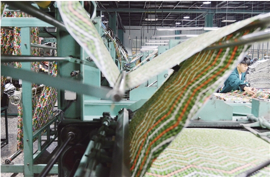 昨天在浙江寶紡印染有限公司里,從生產(chǎn)線上下來(lái)的印染產(chǎn)品直接包裝發(fā)貨,實(shí)現(xiàn)染整、包裝一條龍。