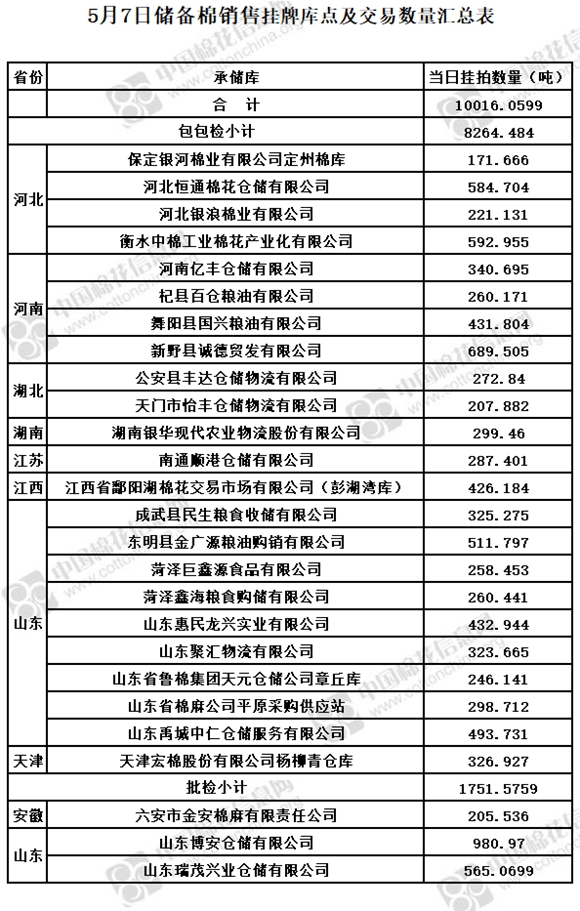 附件:1.5月7日上市銷售儲備棉數(shù)據(jù)明細(xì)表(包包檢)(提取碼:3az4)