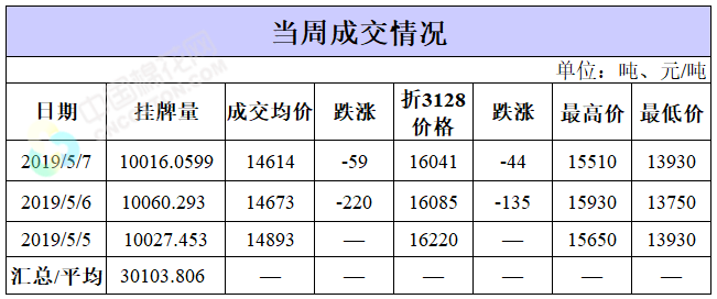 截至5月7日累計輪出銷售資源3萬噸,最高成交價15930元/噸,最低成交價13750元/噸。