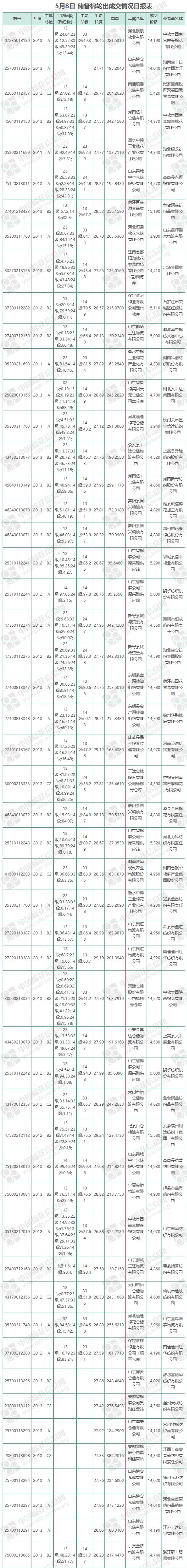 截至5月8日累計輪出銷售資源4.1萬噸,成交最高價15930元/噸,最低價13750元/噸。