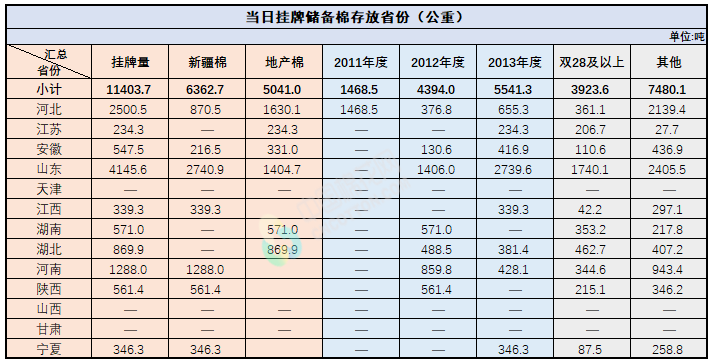 2.當日輪出上市儲備棉中有部分為分批抽樣公檢。抽樣比率及抽樣方法按照棉花國家標準規(guī)定,品質(zhì)指標包括顏色級、軋工質(zhì)量、長度、馬克隆值、斷裂比強度、長度整齊度指標;重量采用原入庫公檢結(jié)果,不再重新檢驗。