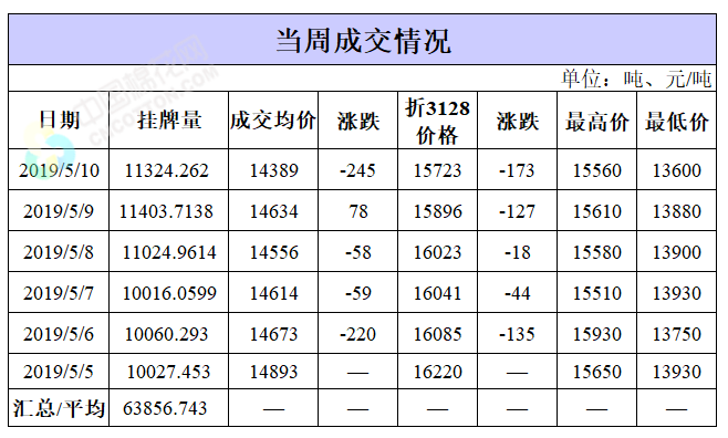 截至5月10日累計(jì)輪出銷售資源6.4萬(wàn)噸,成交最高價(jià)15930元/噸,最低價(jià)13600元/噸。