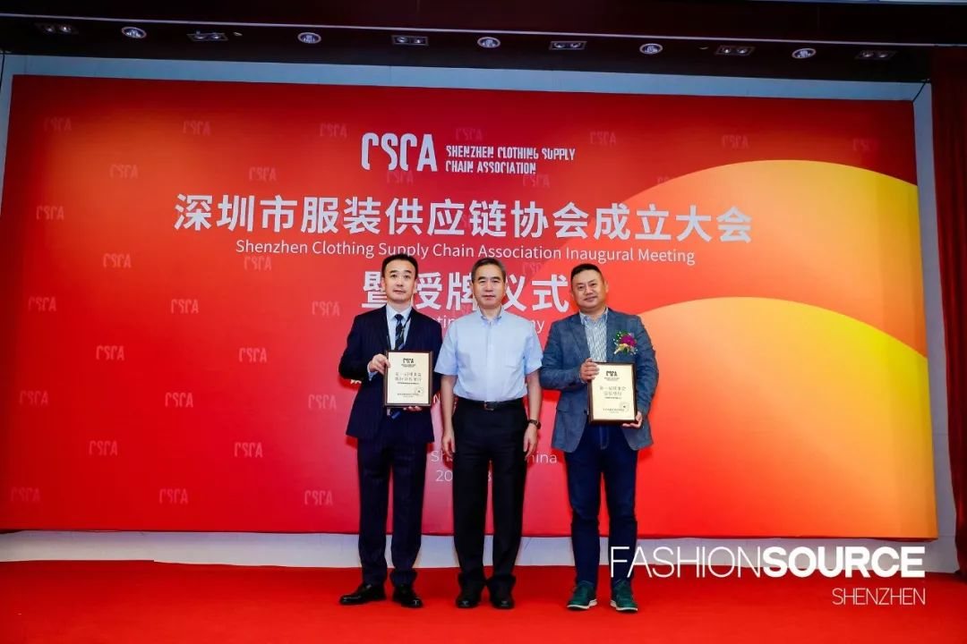 ▲張祥全執(zhí)行會長(深圳市鵬城展覽策劃有限公司董事長)為副會長杭州億佰服飾有限公司總經理鄒進文、深圳市盛軒實業(yè)有限公司總經理郝為民、深圳尚魔師紡織科技有限公司董事長何涵、深圳尚線科技有限公司總經理董耀華、顏諾國際時尚設計(深圳)有限公司總經理任志輝、深圳市頂尚紡織股份有限公司總經理黃振亞 、盈藝集團副總經理鄭華建、聚道獨立設計師平臺總經理卓洪波、深圳市蔻牌服飾有限公司董事長尹之軍、深圳市蝶訊網科技股份有限公司董事長賀鑫授牌