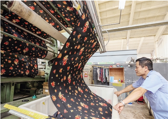 前天上午,在紹興南燕染整有限公司印花車間,一匹匹色彩鮮艷的印花面料從印花機(jī)中徐徐“吐”出。南燕染整通過(guò)“加工轉(zhuǎn)經(jīng)銷”模式,逐步拉長(zhǎng)印染產(chǎn)業(yè)鏈,提升產(chǎn)品附加值。公司從去年8月開始經(jīng)銷工作,目前已實(shí)現(xiàn)250萬(wàn)美元出口額。
