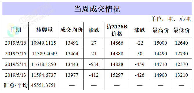 截至5月16日累計(jì)輪出銷(xiāo)售資源10.94萬(wàn)噸,成交最高價(jià)15930元/噸,最低價(jià)12570元/噸。
