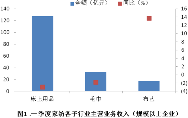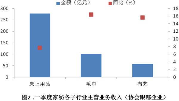 表1.2019年1季度家紡行業(yè)各項主要指標及同比增幅(單位:億元)