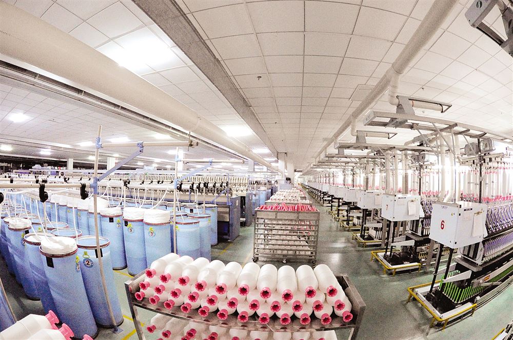 震澤鎮(zhèn)的蘇州震綸棉紡有限公司已轉(zhuǎn)型成一個新型現(xiàn)代紡紗企業(yè),公司智能車間實現(xiàn)生產(chǎn)全程自動化、控制系統(tǒng)智能化、在線監(jiān)測智慧化。圖為公司智能生產(chǎn)車間。