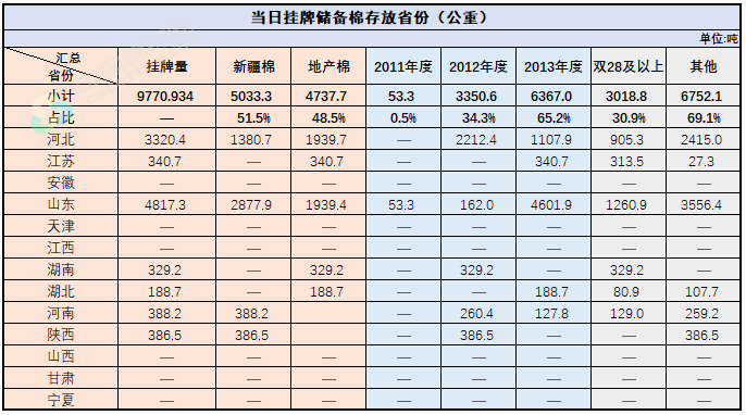 2.當日輪出上市儲備棉中有部分為分批抽樣公檢。抽樣比率及抽樣方法按照棉花國家標準規(guī)定,品質指標包括顏色級、軋工質量、長度、馬克隆值、斷裂比強度、長度整齊度指標;重量采用原入庫公檢結果,不再重新檢驗。