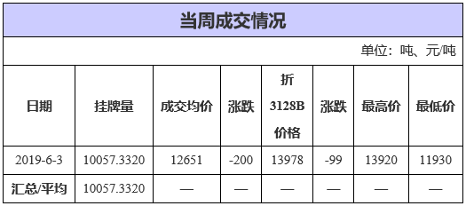 截至6月3日累計輪出銷售資源23.30萬噸,成交最高價15930元/噸,成交最低價11700元/噸。