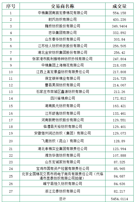 新疆棉成交均價12775元/噸,新疆棉折3128價格13987元/噸,新疆棉加價幅度162元/噸。