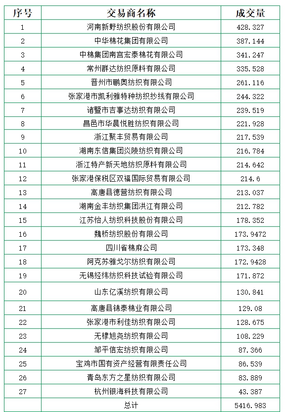 新疆棉成交均價(jià)12675元/噸,新疆棉折3128價(jià)格13954元/噸,新疆棉加價(jià)幅度129元/噸。