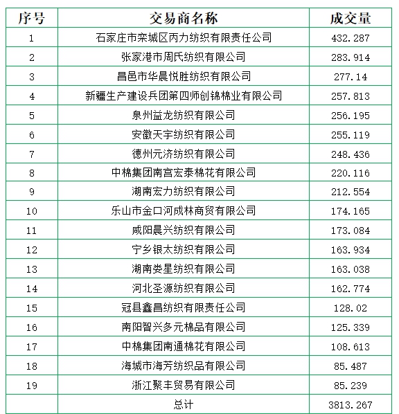 新疆棉成交均價(jià)12722元/噸,新疆棉折3128價(jià)格13942元/噸,新疆棉加價(jià)幅度117元/噸。