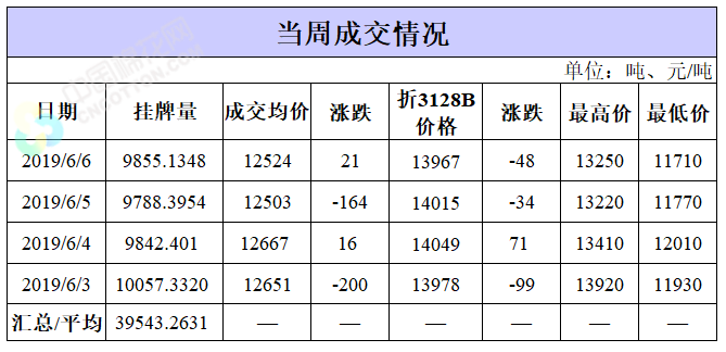 截至6月6日,累計(jì)計(jì)劃出庫(kù)26.25萬噸,成交最高價(jià)15930元/噸,成交最低價(jià)11700元/噸。