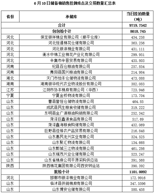 附件:1.6月10日上市銷售儲(chǔ)備棉數(shù)據(jù)明細(xì)表(包包檢)