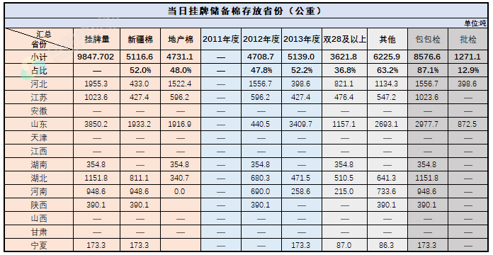 中國(guó)儲(chǔ)備棉管理有限公司定于6月11日上市銷售儲(chǔ)備棉重量9847.7018噸,共54捆。具體庫(kù)點(diǎn)及數(shù)量見(jiàn)下表。