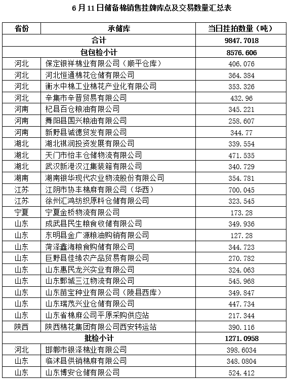 附件:1.6月11日上市銷售儲(chǔ)備棉數(shù)據(jù)明細(xì)表(包包檢)