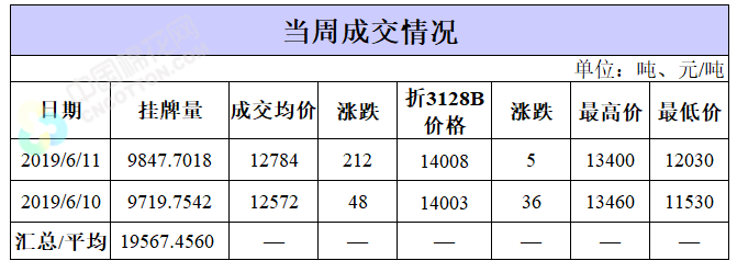 截至6月11日累計輪出銷售資源28.21萬噸,成交最高價15930元/噸,成交最低價11530元/噸。