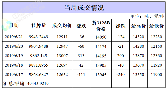 截至6月21日累計輪出銷售資源36.09萬噸,成交最高價15930元/噸,成交最低價11530元/噸。