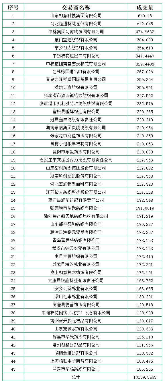 6月25日儲(chǔ)備棉輪出銷售資源10821.2135噸,實(shí)際成交10139.8465噸,成交率93.70%,成交均價(jià)12900元/噸,較24日下跌43元/噸;折3128價(jià)格14148元/噸,較21日上漲70元/噸。