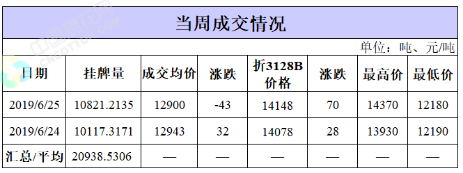 截至6月25日累計(jì)輪出銷售資源38.18萬噸,成交最高價(jià)15930元/噸,成交最低價(jià)11530元/噸。