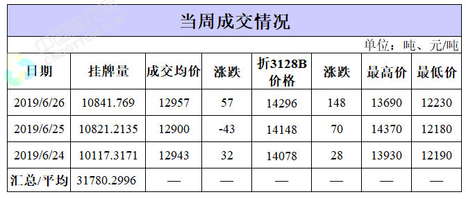 截至6月26日累計輪出銷售資源39.27萬噸,成交最高價15930元/噸,成交最低價11530元/噸。