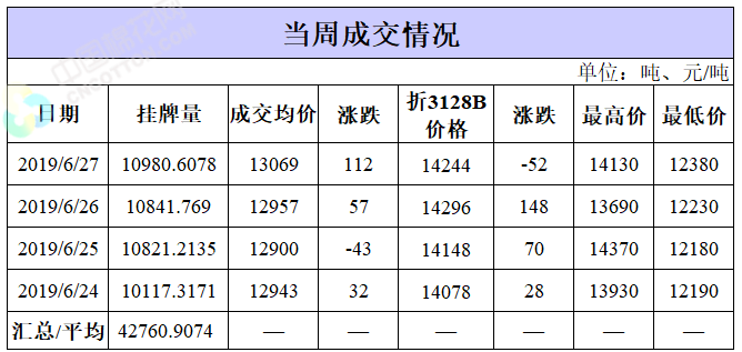 截至6月27日累計(jì)輪出銷售資源40.37萬噸,成交最高價(jià)15930元/噸,成交最低價(jià)11530元/噸。