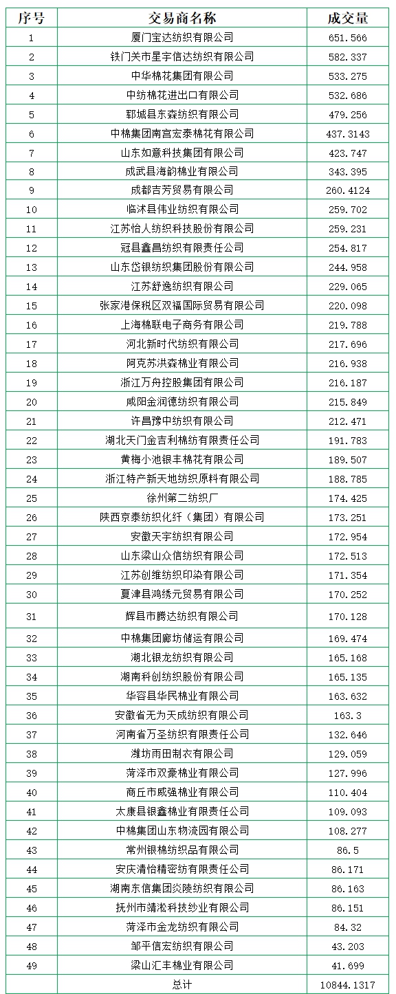 新疆棉成交均價(jià)13217元/噸,新疆棉折3128價(jià)格14435元/噸,新疆棉加價(jià)幅度920元/噸。