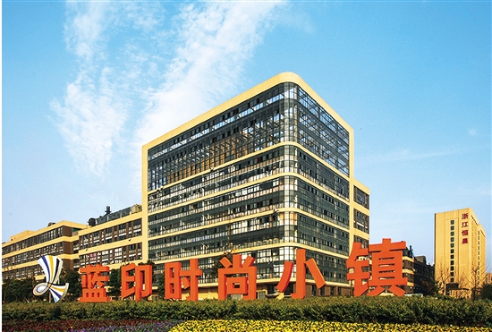 走進“藍印時尚小鎮(zhèn)”,看不到滾滾濃煙、汩汩污水。