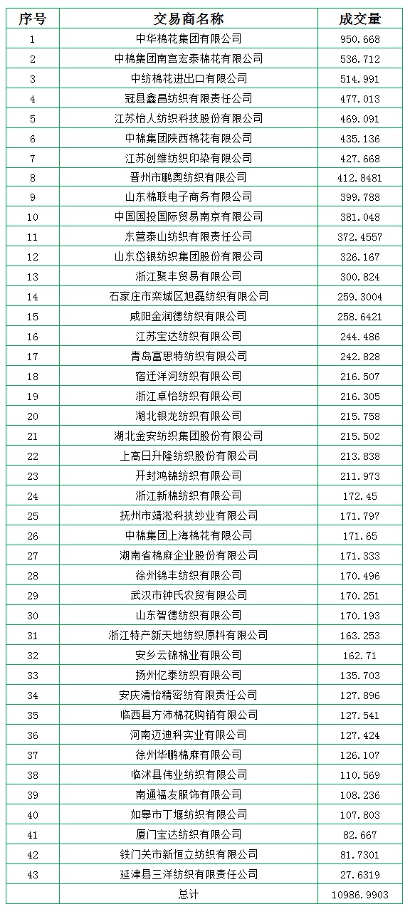 7月1日儲(chǔ)備棉輪出銷售資源10986.9903噸,實(shí)際成交10986.9903噸,成交率100%,成交均價(jià)13426元/噸,較28日上漲433元/噸;折3128價(jià)格14640元/噸,較28日上漲461元/噸。