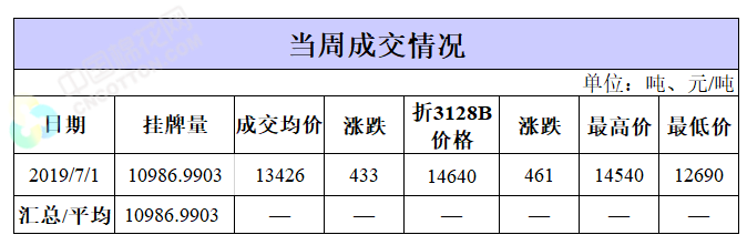 截至7月1日累計(jì)輪出銷售資源42.57萬(wàn)噸,成交最高價(jià)14540元/噸,成交最低價(jià)12690元/噸。