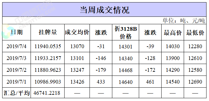 截至7月4日累計輪出銷售資源46.14萬噸,成交最高價15930元/噸,成交最低價11530元/噸。