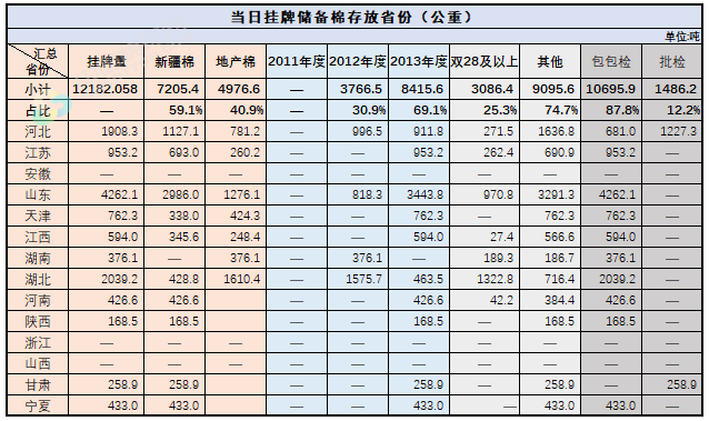 2.當(dāng)日輪出上市儲(chǔ)備棉中有部分為分批抽樣公檢。抽樣比率及抽樣方法按照棉花國(guó)家標(biāo)準(zhǔn)規(guī)定,品質(zhì)指標(biāo)包括顏色級(jí)、軋工質(zhì)量、長(zhǎng)度、馬克隆值、斷裂比強(qiáng)度、長(zhǎng)度整齊度指標(biāo);重量采用原入庫(kù)公檢結(jié)果,不再重新檢驗(yàn)。