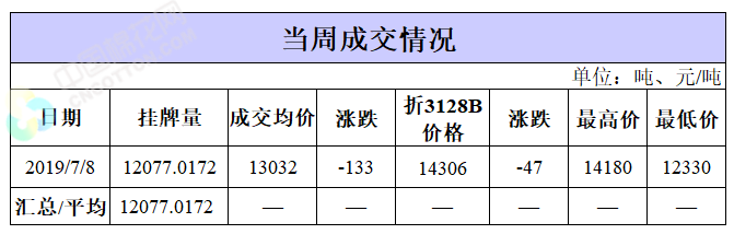 截至7月8日累計輪出銷售資源48.57萬噸,成交最高價15930元/噸,成交最低價11530元/噸。
