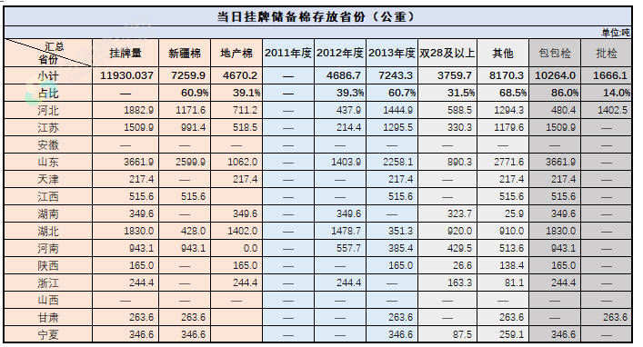 2.當(dāng)日輪出上市儲(chǔ)備棉中有部分為分批抽樣公檢。抽樣比率及抽樣方法按照棉花國家標(biāo)準(zhǔn)規(guī)定,品質(zhì)指標(biāo)包括顏色級(jí)、軋工質(zhì)量、長(zhǎng)度、馬克隆值、斷裂比強(qiáng)度、長(zhǎng)度整齊度指標(biāo);重量采用原入庫公檢結(jié)果,不再重新檢驗(yàn)。
