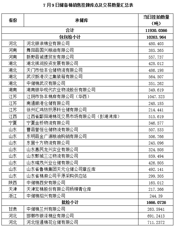 附件:1.7月9日上市銷售儲(chǔ)備棉數(shù)據(jù)明細(xì)表(包包檢)