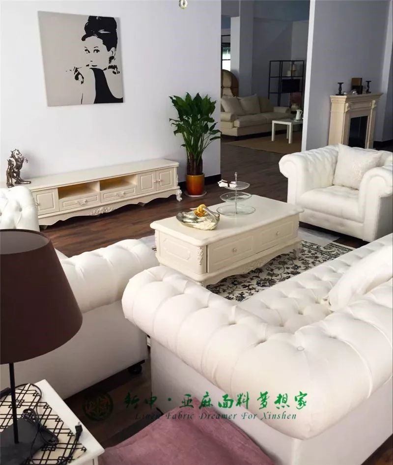 亞麻布料只能制作衣服?新申亞麻文化創(chuàng)意設計中心會為你送上不一樣的答案。走進三樓的全景式展示廳,窗簾、沙發(fā)布、靠墊、桌布、床上用品、衣服、墻上裝飾品等亞麻面料制作的家居用品讓人目不暇接,一股清新自然的氣息席卷了所有的感官,讓人眼前一亮。