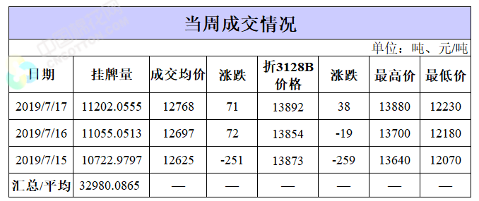 截至7月17日累計輪出銷售資源56.73萬噸,成交最高價15930元/噸,成交最低價11530元/噸。