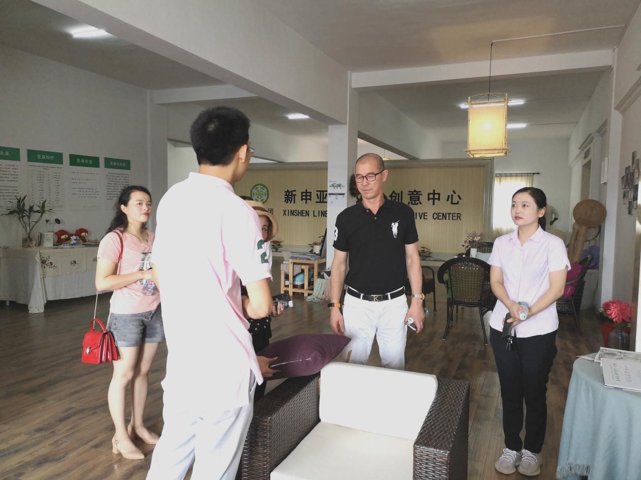 7月17日,蘇州凱靈箱包有限公司申建新董事長攜團隊到訪新申集團,進行深度洽談合作,并在新申集團高層領導的陪同下參觀新申亞麻村。