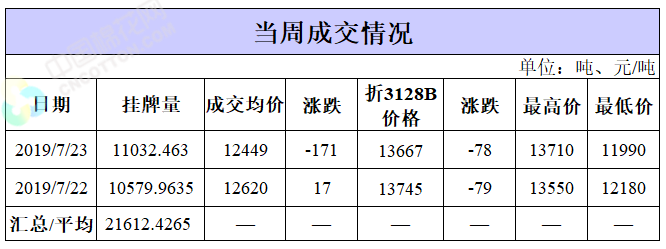 截至7月23日累計輪出銷售資源61.15萬噸,成交最高價15930元/噸,成交最低價11530元/噸。