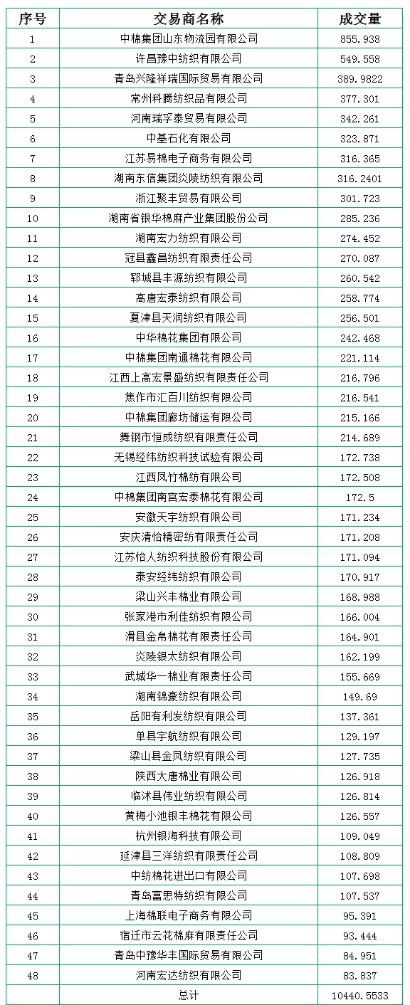 新疆棉成交均價(jià)12648元/噸,新疆棉折3128價(jià)格13972元/噸,新疆棉加價(jià)幅度684元/噸。