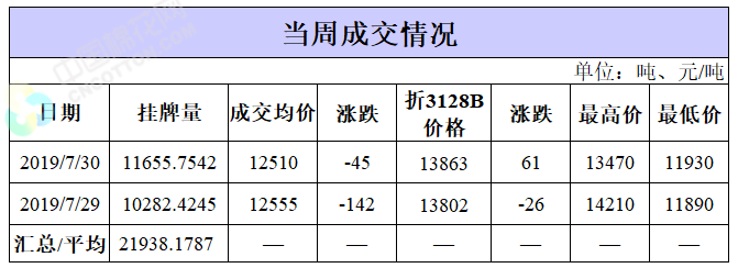 截至7月30日累計(jì)輪出銷售資源66.49萬噸,成交最高價(jià)15930元/噸,成交最低價(jià)11530元/噸。